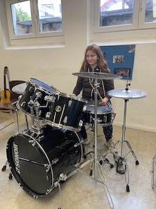 Auf vielfachen Wunsch unserer Schüler*innen wurden zwei AG's installiert: eine für Gitarren, sowohl elektronisch als auch akustisch, und eine für das Schlagzeug. Einen leichten Einstieg in die Welt dieser Instrumente bieten unsere AGs mit möglichst praktischem Ansatz für schnelle erste Erfolgserlebnisse.